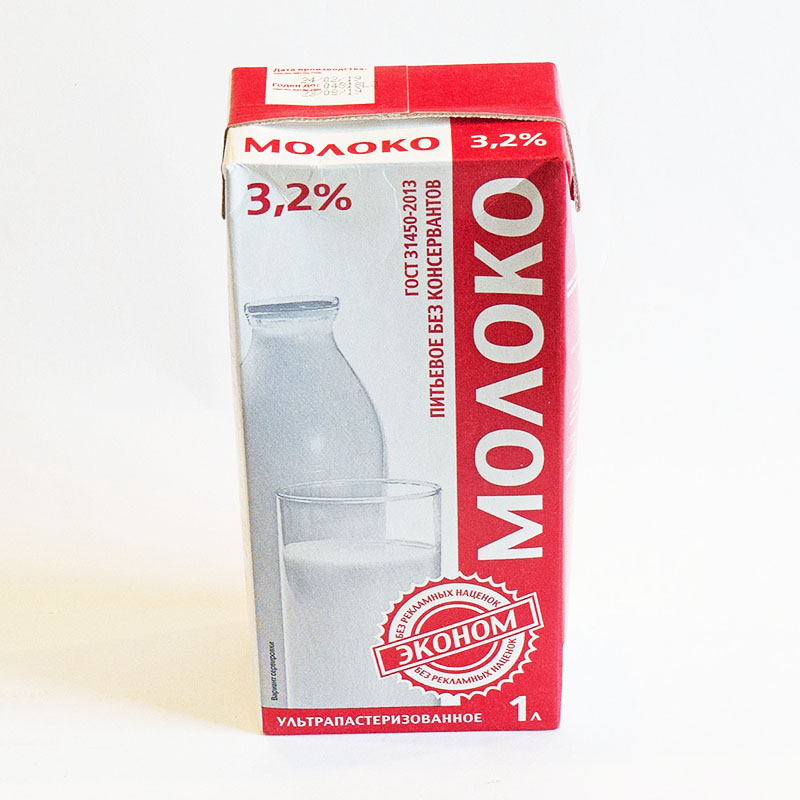 ЭКОНОМ. Молоко питьевое ультрапастеризованное, м.д.ж. 3.2%, объем: 1 л (ООО «Пятигорский молочный комбинат», Ставропольский край)