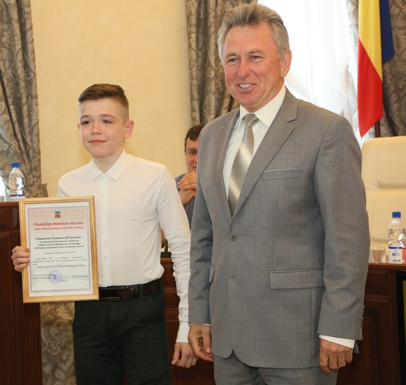 За высокие спортивные достижения и в связи с успешным выступлением в Первенстве России Джамиль Джамалов и Дмитрий Буглак награждены благодарственными письмами главы администрации Волгодонска. 20 мая Виктор Мельников лично вручил юным спортсменам награды и поздравил с успешным выступлением на соревнованиях.