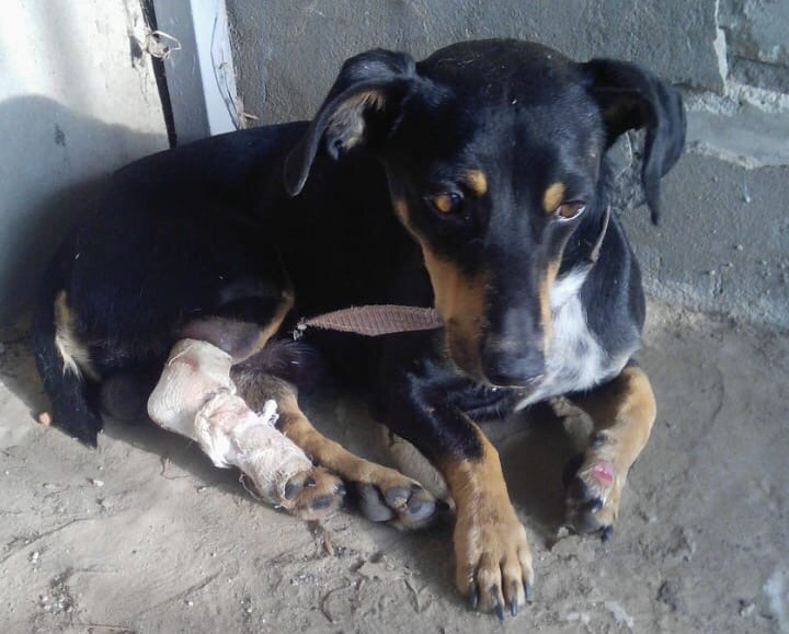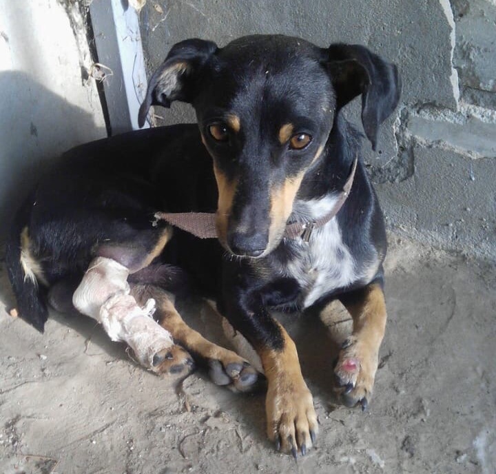 Мальчишка попал под машину, однако ему повезло – нашлись люди, которые оплатили ему операцию по остеосинтезу и взяли на временную передержку до выздоровления. Сейчас мальчишке в лапку вживлена специальная спица, а когда поломанные косточки срастутся – ее нужно будет убрать. Вот только потом ему пойти некуда – дома у малыша нет.