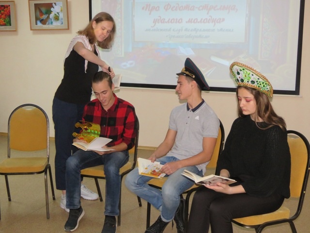 В завершение встречи все присутствующие с удовольствием послушали отрывок из пьесы Леонида Филатова «Про Федота-стрельца, удалого молодца» в прочтении молодежного клуба театрального чтения «ГромкоГоворитель». А потом состоялась профессиональная встреча с фотографом, руководителем творческой группы «ЛиниЯ взгляда» Антоном Сологубовым и членом Союза художников Волгодонска Зинаидой Петраковой.