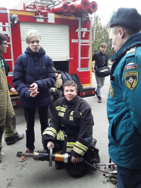 В 17-ую пожарно-спасательную часть пришли старшеклассники из Центра образования города Волгодонска: практически одни юноши, которым было интересно узнать о работе пожарного, чтобы к концу года определиться с выбором будущей профессии.