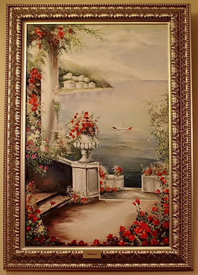 На выставке представлены копии полотен русских художников XIX века Васнецова, Поленова, Шишкина, Серова, Кончаловского…