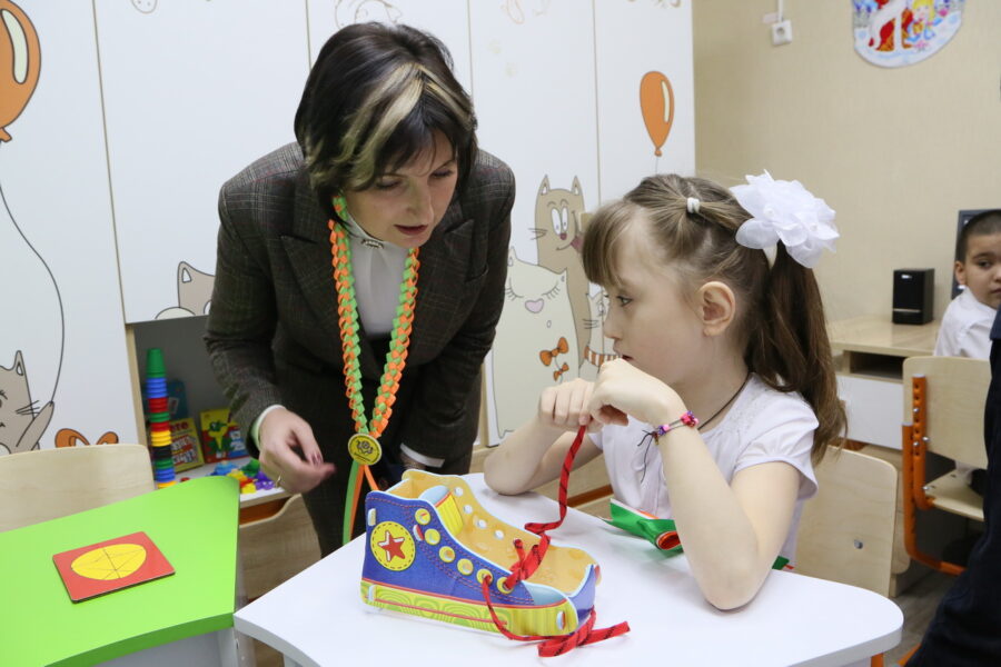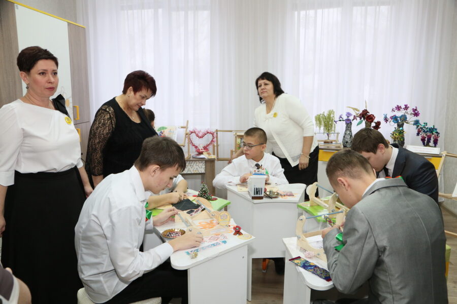Директор Волгодонской специальной школы-интерната «Восхождение» Татьяна Белоусова пригласила гостей посмотреть, где занимаются ребята на протяжении дня. На первом этаже расположились залы ЛФК и кабинеты психологической нагрузки, этажом выше – мастерские, где дети занимаются декоративно-прикладным творчеством, кабинеты логопедов и дефектологов, оснащенные новым коррекционно-развивающим оборудованием, кабинет робототехники и гончарного дела.