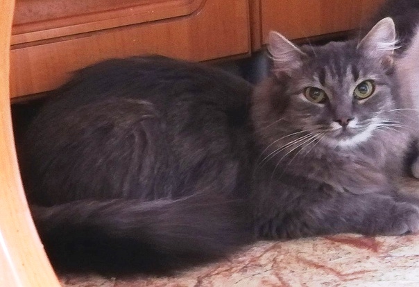 Стильная серая красотка, 8 месяцев, очень стрессует, но при этом ласковая.