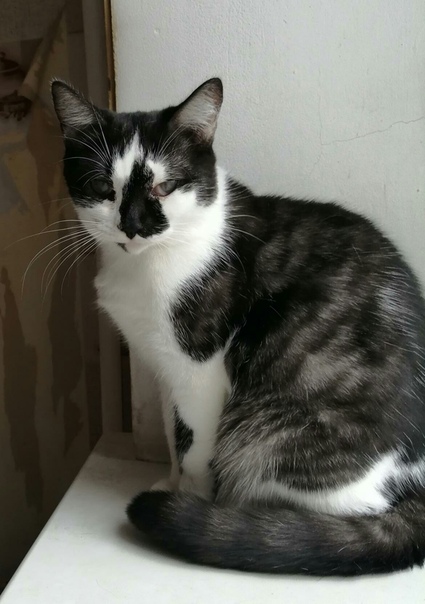 Двухлетний пятнистый котик, спокойный и ласковый; в детстве перенес болезнь глаз, но видит хорошо.