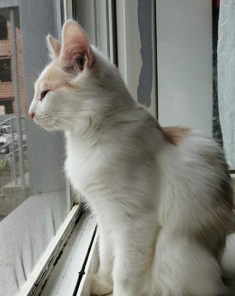 Молодая изящная кошечка, белая с рыжим.