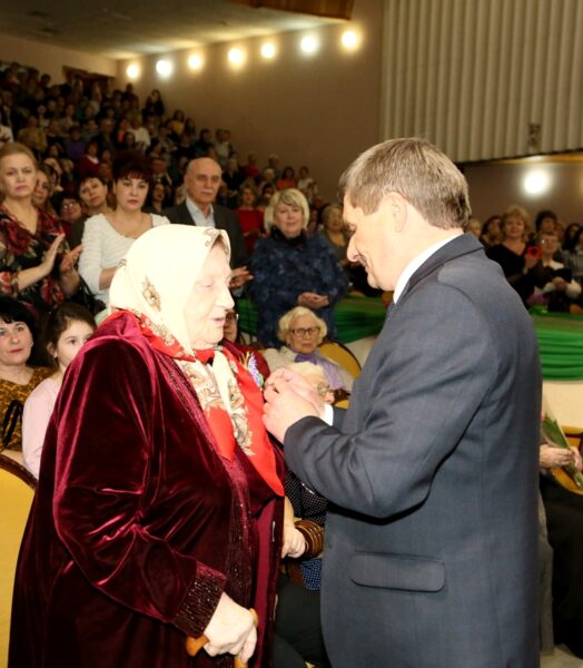 Юбилейными медалями «75 лет Победы в Великой Отечественной войне 1941-45 годов» были награждены женщины – ветераны Великой Отечественной войны. Зал их приветствовал стоя и долгими аплодисментами.
