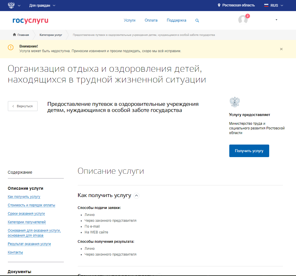 4. Нажмите синюю кнопку «Получить услугу» и далее Вам необходимо пройти несколько шагов: