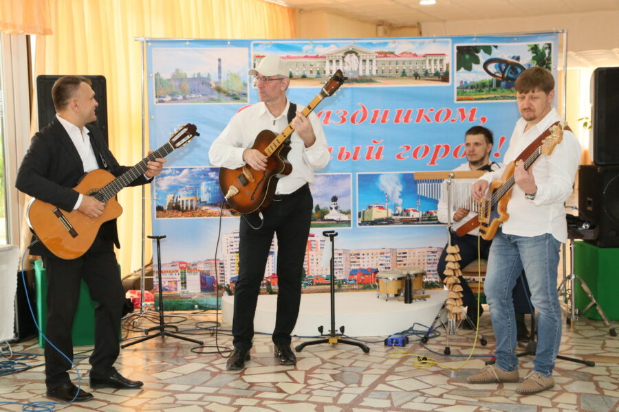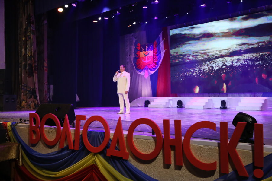 Концертную программу гостям подарили артисты ДК им. Курчатова, а концерн «Росэнергоатом» подарил волгодонцам в день рождения города сольную программу народного артиста Российской Федерации Василия Овсянникова.