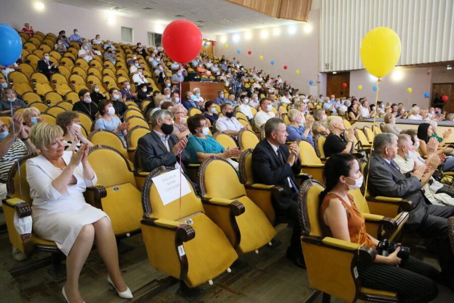 Вчера, 20 августа, во Дворце культуры им. Курчатова состоялось торжественное собрание, посвященное 70-ой годовщине основания города Волгодонска. Из-за мер безопасности, связанных с коронавирусом, большой зал дворца был заполнен частично, однако атмосфера праздника была очень теплой и трогательной.