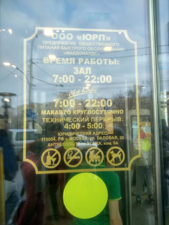 Кроме того, приличные очереди выстраиваются к окошкам Макавто — с тыльной стороны ресторана. Кстати, экспресс-обслуживание работает круглые сутки, судя по данным ЯндексКарт, а сам Макдоналдс — с 7 до 22 часов, технический перерыв — с 4 до 5 часов утра.