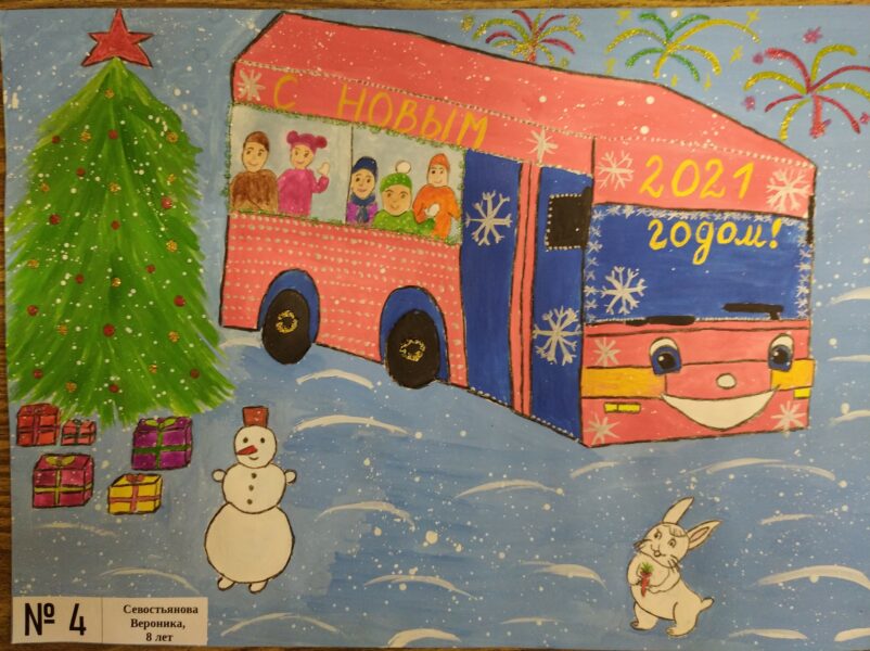 В Волгодонске подведены итоги конкурса детских рисунков «ВолшеБус. Новогоднее путешествие», который проводился с 26 ноября 2020 года по 15 января 2021 года по инициативе МУП «Городской пассажирских транспорт».