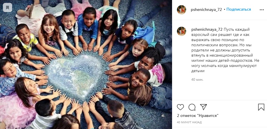 «Пусть каждый взрослый сам решает где и как выражать свою позицию по политическим вопросам. Но мы родители не должны допустить втянуть в несанкционированный митинг наших детей-подростков. Не могу молчать когда манипулируют детьми», — указал автор «Пшеничная-72».