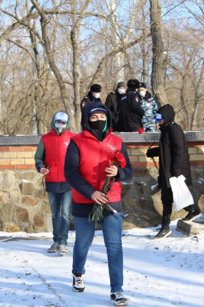 Перед возложением цветов к молодым людям обратились председатель Волгодонской городской Думы – глава города Сергей Ладанов и начальник отдела по молодежной политике Ирина Воробьева. Они рассказали о жестоких кровопролитных боях за освобождение Дона и Ростова и отметил значимость этих сражений в истории Великой Отечественной войны.