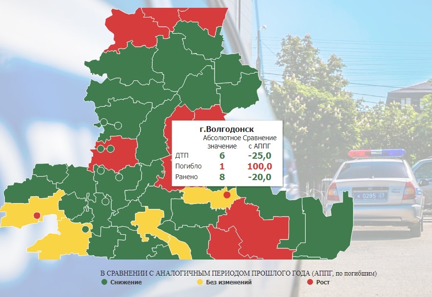 Самыми «опасными» в январе 2020 года оказались 12 из 55 муниципалитетов. Среди них Ростов, Батайск, Азовский, Аксайский, Октябрьский, Каменский и Волгодонский районы области. Всего за этот период произошло 209 ДТП, в которых погибли 32 гражданина и пострадали 265.