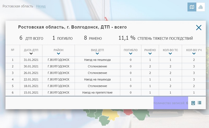 Год спустя, по итогам января 2021 года, в «красную зону» попали 11 муниципалитетов, а самыми «опасными» стали Таганрог с 13 ДТП и Волгодонск. В нашем городе произошло 6 ДТП, в которых погиб один человек, а ещё восемь были ранены.