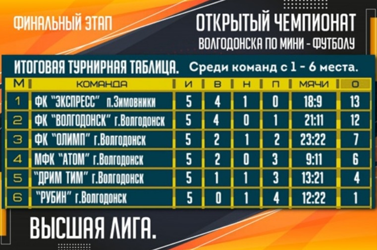 С итоговой турнирной таблицей можно ознакомиться ниже. Подробности в официальной группе ФК «Волгодонск» в «ВКонтакте»