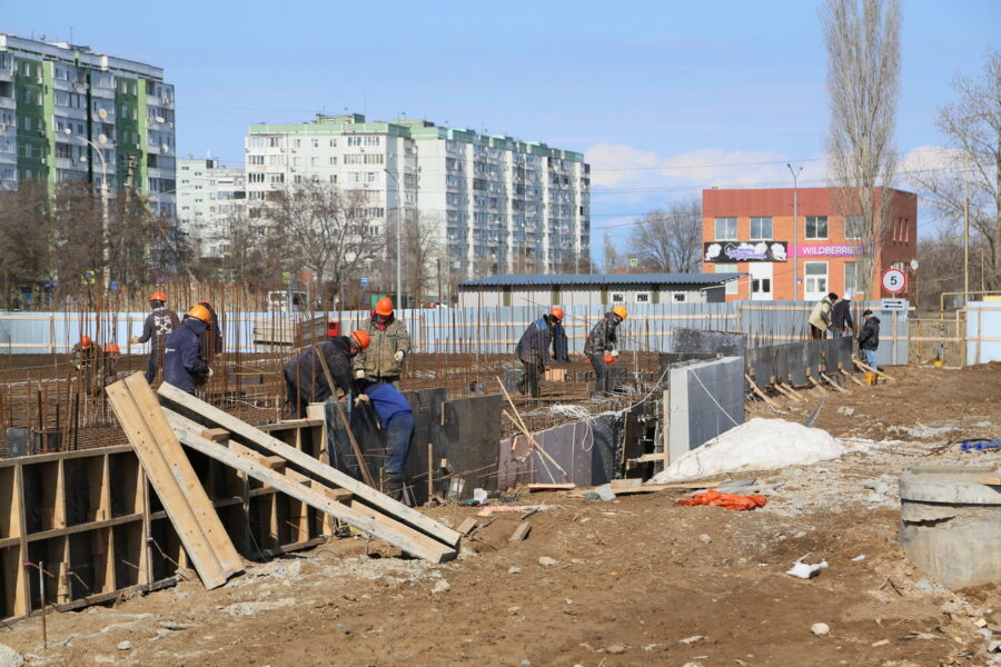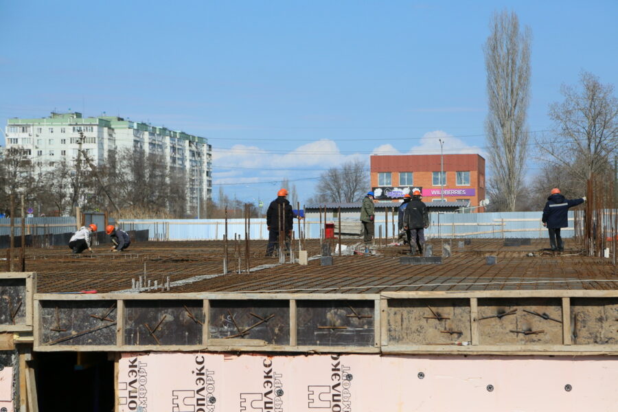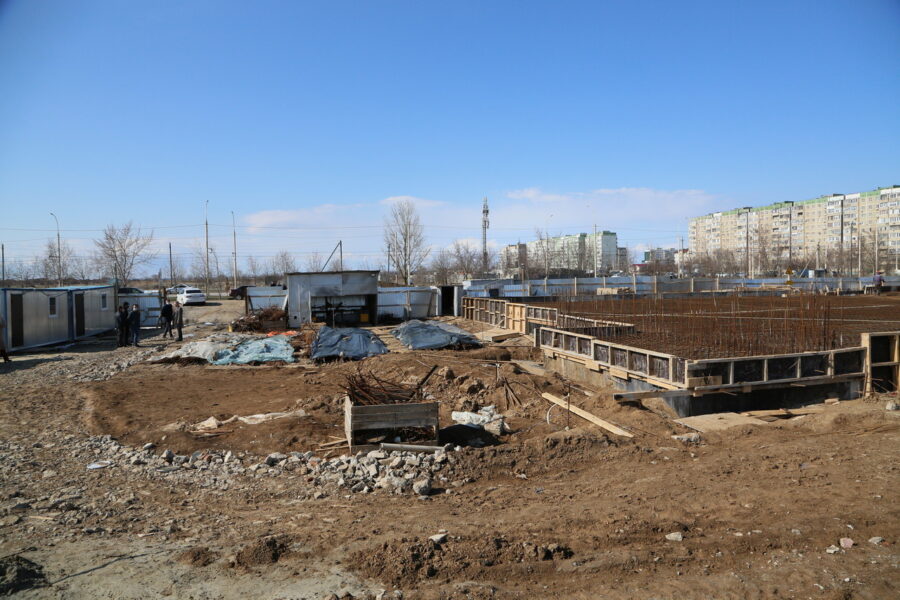 Сейчас на стройке работает 20 человек. Выполняется армирование плиты перекрытия подвального помещения, на этой неделе ожидается ее бетонирование. В ближайшее время подрядчик приступит к армированию колонн диафрагмы жесткости первого этажа.