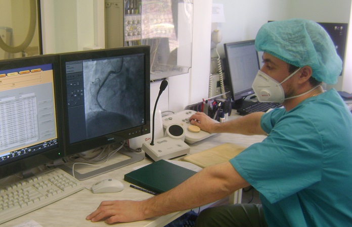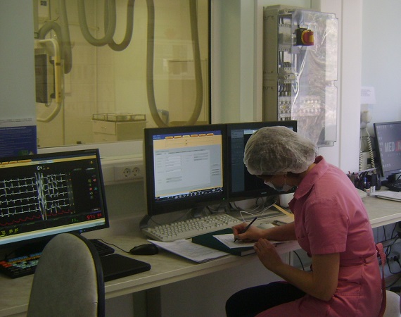 Принципиальное отличие нашего центра от других больниц — то, что здесь есть ангиографическая установка. Ангиограф, как говорят в народе — аппарат, который позволяет выполнять сложные высокотехнологичные операции на сосудах сердца.