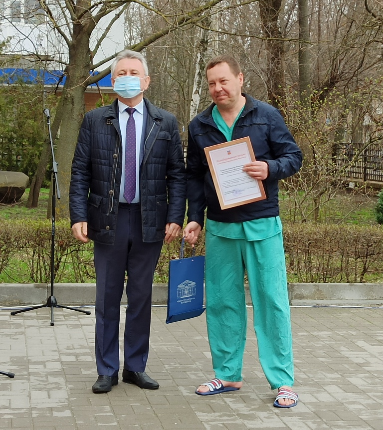 Владимир Юрьевич поблагодарил за содействие главу администрации Виктора Мельникова и его заместителя Светлану Цыбу. По его словам, благодаря их постоянному контролю за процессом госпиталю и на стадии его становления, и уже на стадии работы была оказана всесторонняя поддержка: