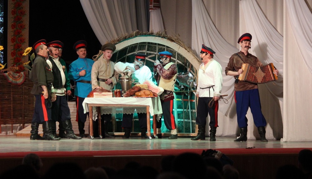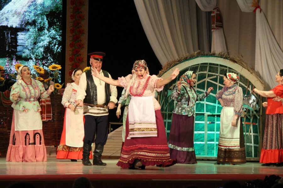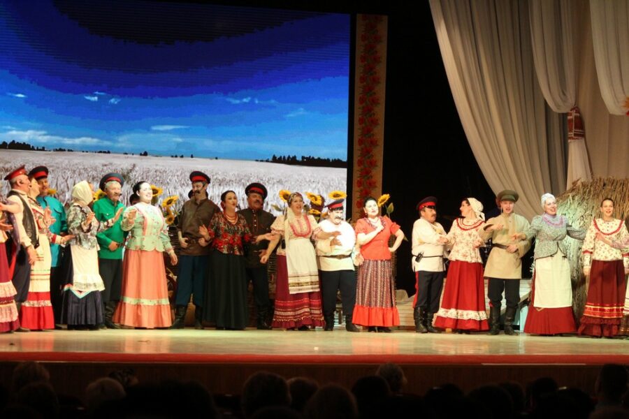 Сцены из спектаклей сопровождались музыкальными и хореографическими номерами в исполнении вокальной, балетной групп ансамбля «Казачий Дон» под живую музыку инструментальной группы.