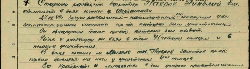 Николай Емельянович освобождал Московскую область, а также Белоруссию и Украину. Побывал в самом пекле – участвовал в двух крупных операциях: Корсунь – Шевченковская и Ясско-Кишеневская.