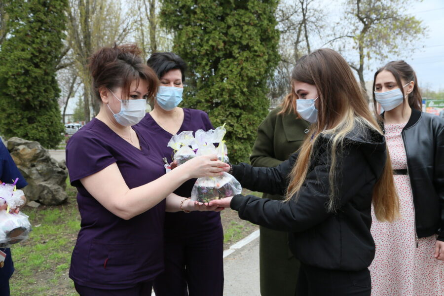 – В рамках проекта “Марафон Добрых Дел” наши студенты решили именно так выразить благодарность медицинским работникам города, в том числе – врачам и медсестрам первой городской больницы, в составе которой работает ковидный госпиталь. Мы надеемся, что наши подарки будут уместны в преддверии праздника Пасхи и поднимут настроение врачам, – отметила организатор акции и преподаватель техникума Зинаида Цветова.