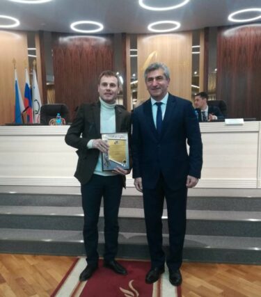 Министр спорта Ростовской области Самвел Аракелян вручил заслуженные награды за отличную работу председателю спорткомитета Волгодонска Владимиру Тютюнникову.