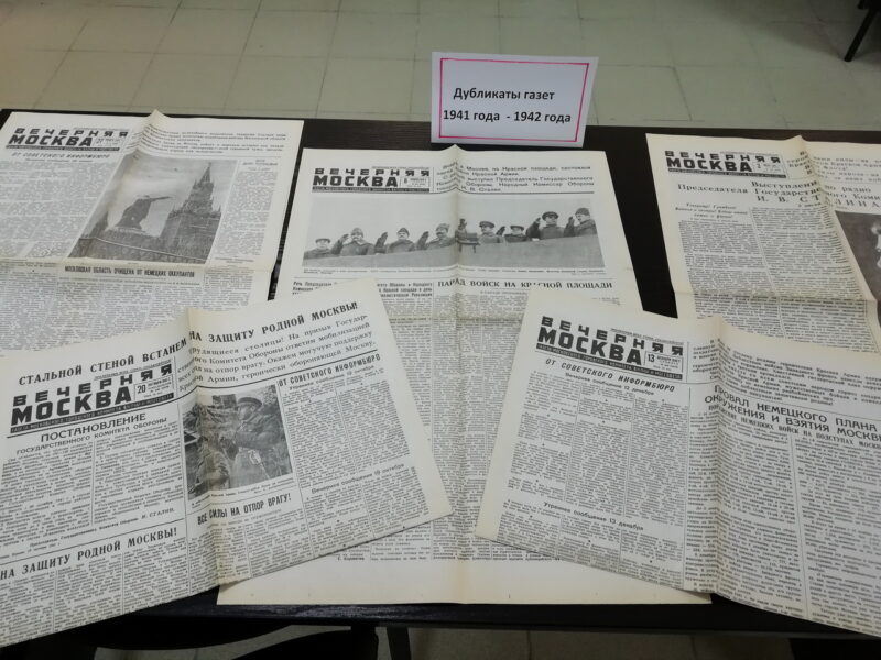 Столы читального зала занимает эксклюзивный материал – это дубликаты центральных газет СССР 1941, 1942, 1945 годов, переданные в архивный отдел жителем города Волгодонска Владимиром Борисовичем Козловым.