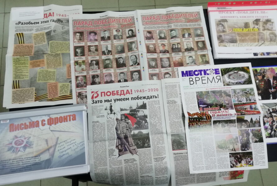 Среди экспонатов и современные волгодонские СМИ, среди которых наша газета «Волгодонская правда» с публикациями проекта «Парад победителей».