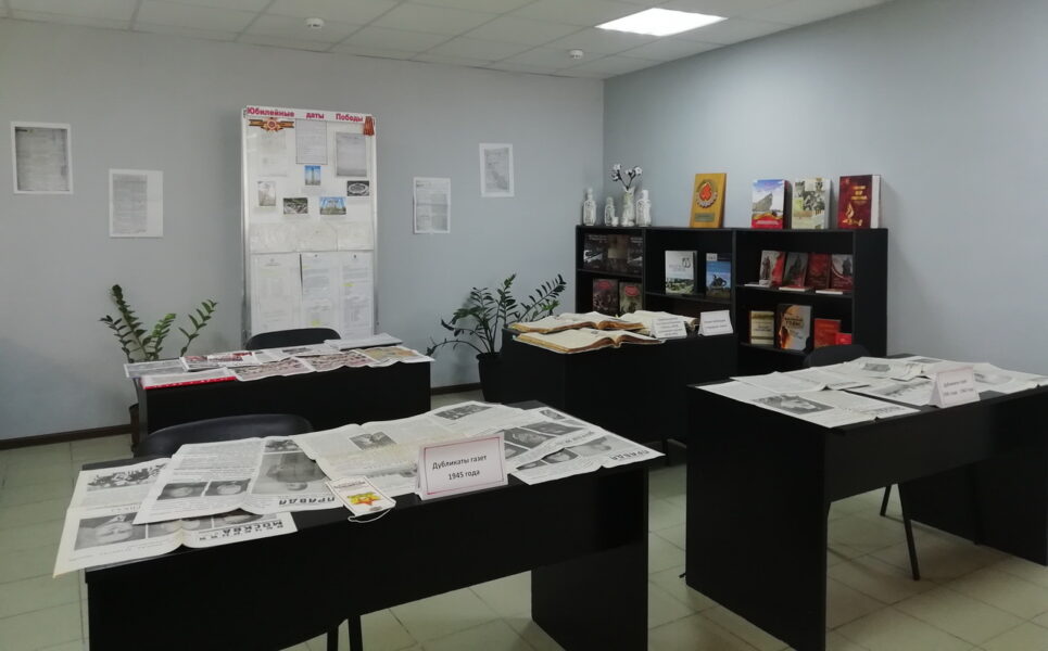 Оформлены стенд «Юбилейные даты Победы», книжная выставка «Эхо победной весны», выставлены подборки газет.