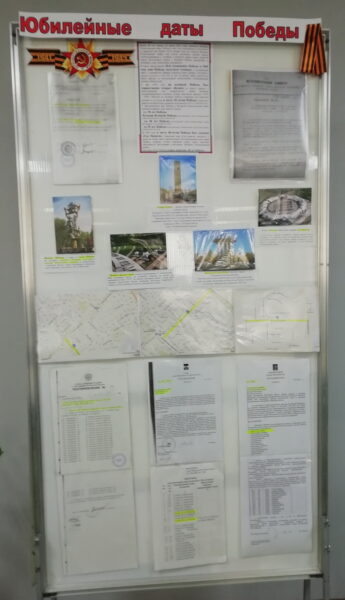 На стенде – копии документов о присвоении названий улицам города Волгодонска, фотографии памятников в честь юбилейных дат со дня Победы.