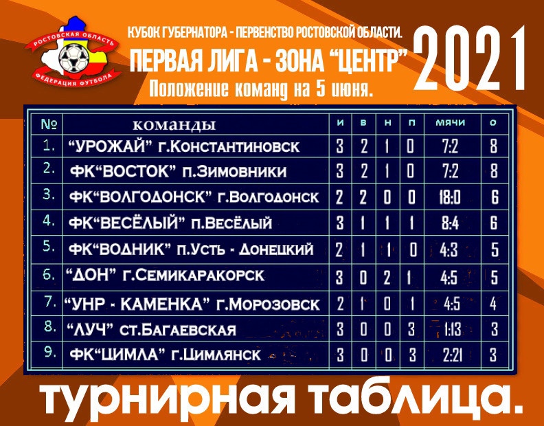 Кубок Губернатора — Первенство Ростовской области по футболу среди мужских команд 1-й лиги — зона Центр. На сегодня в первенстве сыграно 3 тура.
