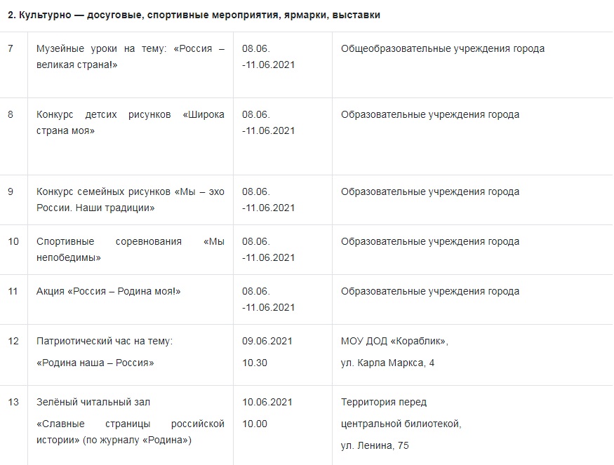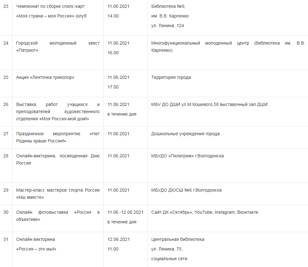 Более 35-ти различных мероприятий пройдёт в Волгодонске по случаю празднования 12 июня Дня России.