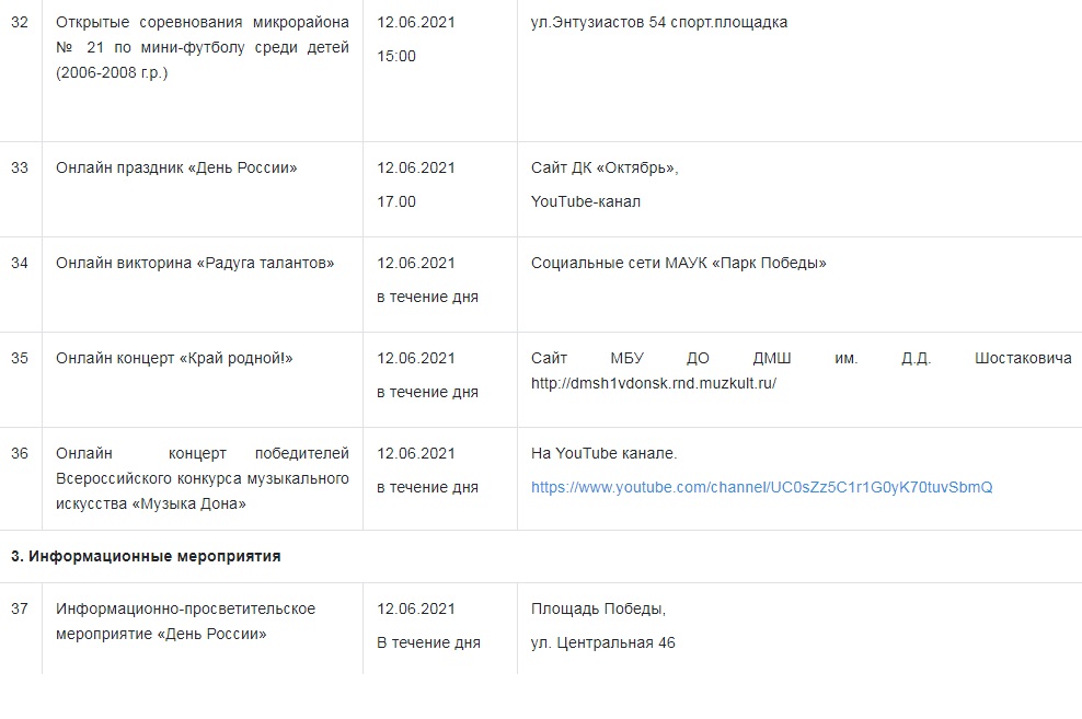 Кроме того, в образовательных учреждениях города и досуговых центрах, в детсадах и библиотеках. во дворцах культуры и в интернете маленьких и больших волгодонцев ждут различные патриотические акции, конкурсы, викторины, флешмобы и многое другое.