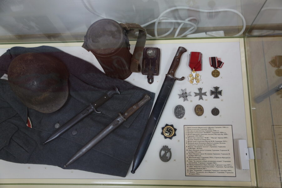 Конечно, в зале выставки происходит полное соприкосновение с эпохой. Фотографии военных лет, военная форма солдат и офицеров, оружие, награды, знамена, документы, газеты, журналы, карты, личные вещи бойцов – на войне не бывает мелочей и сегодня, как память о людском героизме, нам важен каждый штрих той великой войны. Рядом невозможно оставаться безучастным и смотреть в прошлое без волнения.