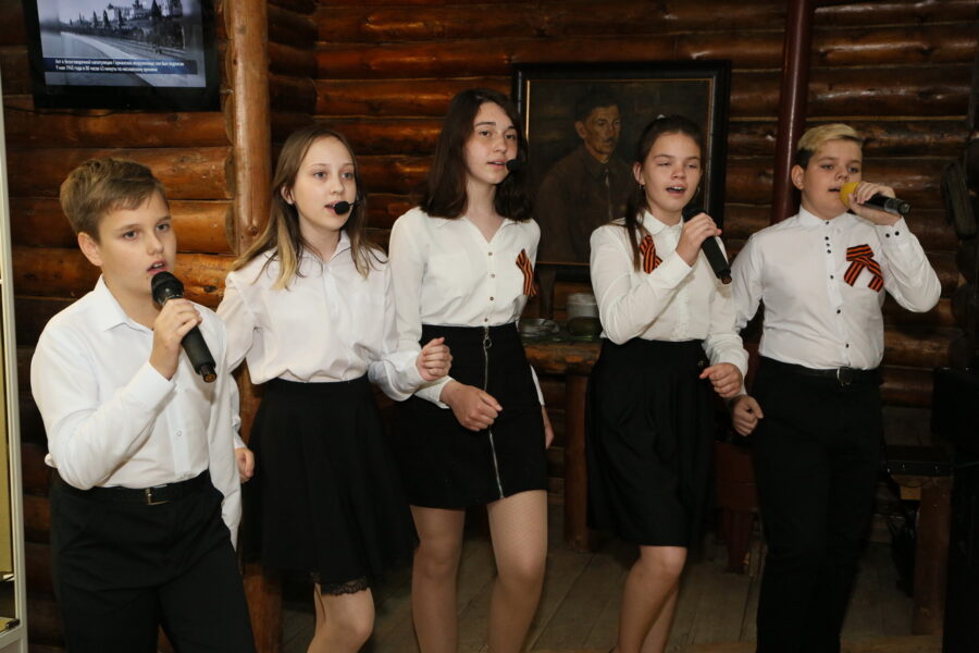 Именно в таком блиндаже 9-ой стрелковой дивизии Западного фронта появились замечательные слова первой лирической песни, рождённой в огне войны. Их написал корреспондент фронтовой газеты «Красноармейская правда» Алексей Сурков в ноябре 1941 года. Проникновенное исполнение песни «В землянке» на музыку Константина Листова в исполнении солистки студии Александра Лаврентьева перенесло гостей торжества на 80 лет назад.