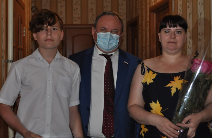 Затем депутат посетил многодетную семью в Волгодонске, в которой подрастает пятеро ребятишек, а четверо из них пока еще дошкольного возраста. Планшет получил 13-летний Кирилл.