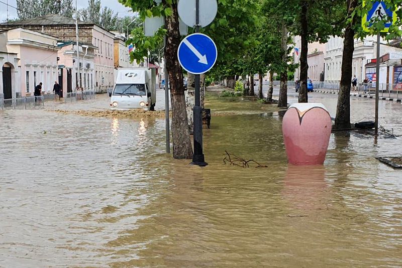 Сильный ливень начался в ночь с 17 на 18 июня — накануне МЧС распространило штормовое предупреждение, а власти города, посмотрев, как днем ранее затопило Керчь, срочно собрали оперативный штаб. Утром 18-го ливень стоял стеной — всего за 6 часов выпала месячная норма осадков, и дождь не прекращался.