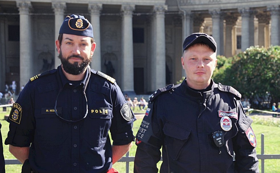Отметить, что с начала чемпионата на улицах северной столицы не было ни одной провокации или крупного нарушения. На городских улицах дежурит интернациональный патруль, состоящий из русских, шведов, поляков и бельгийцев.