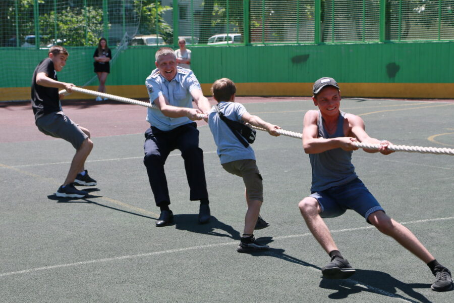 Ребята активно участвовали в перетягивании каната, прыгали на скакалке, жонглировали мячом, а в завершении сыграли в дворовой футбол.
