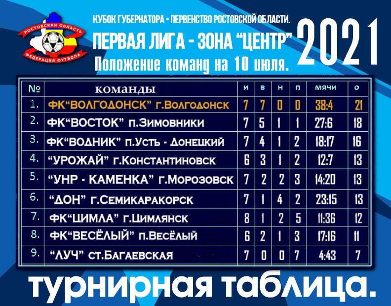 В субботу, 10 июля, в г.Волгодонске состоится матч 9-го тура на Кубок губернатора — Первенство Ростовской области по футболу среди команд Первой лиги зоны «Центр». Соперник — «ДОН» г.Семикаракорск. Спортивный поединок пройдёт на стадионе «Труд». 👉🏻Начало в 18:00. Вход свободный❗