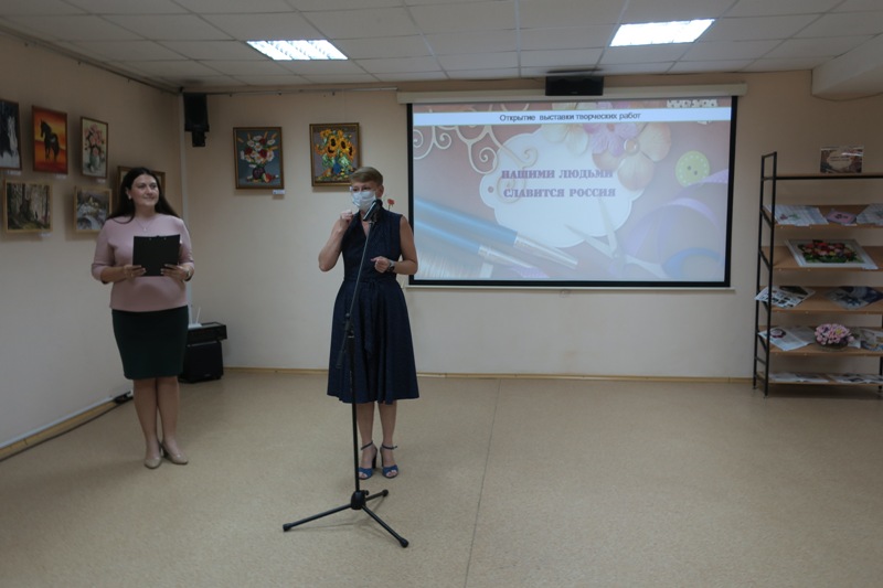 В Центральной библиотеке Волгодонска открылась выставка творческих работ «народных» художников. Она называется «Нашими людьми славится Россия».