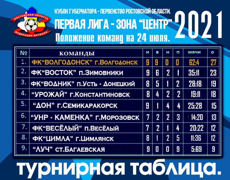 В субботу 24 июля, в Цимлянске состоится матч 11-го тура Первенства Ростовской области по футболу среди команд Первой лиги зоны «Центр».