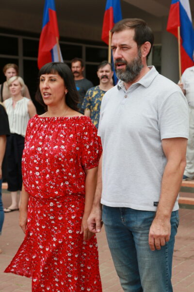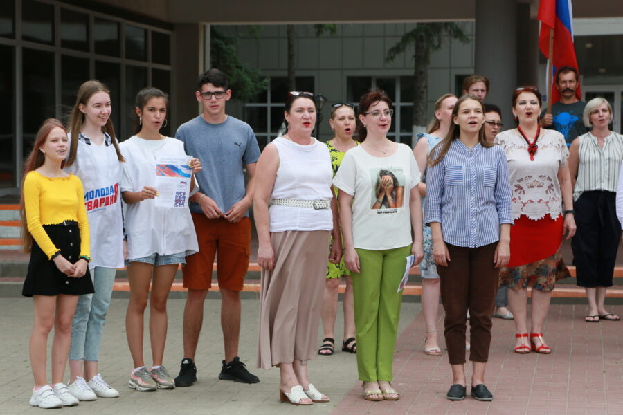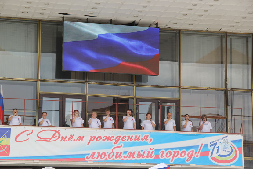 На площади ДК им. Курчатова вместе с молодогвардейцами пел председатель Волгодонской городской Думы – глава города Сергей Ладанов. На площади Победы гимн пели депутаты Наталья Голинская и Алексей Брежнев.