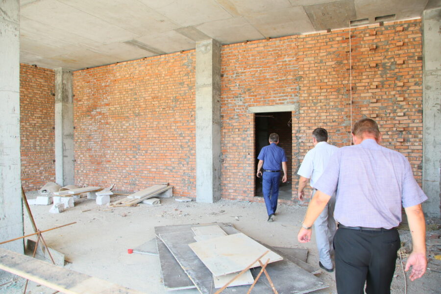 В настоящее время здесь ведутся работы по монтажу опалубки под балки перекрытия первого этажа, демонтаж щитовой опалубки и внутренние отделочные работы цокольного этажа. Готовность объекта – 36 %.