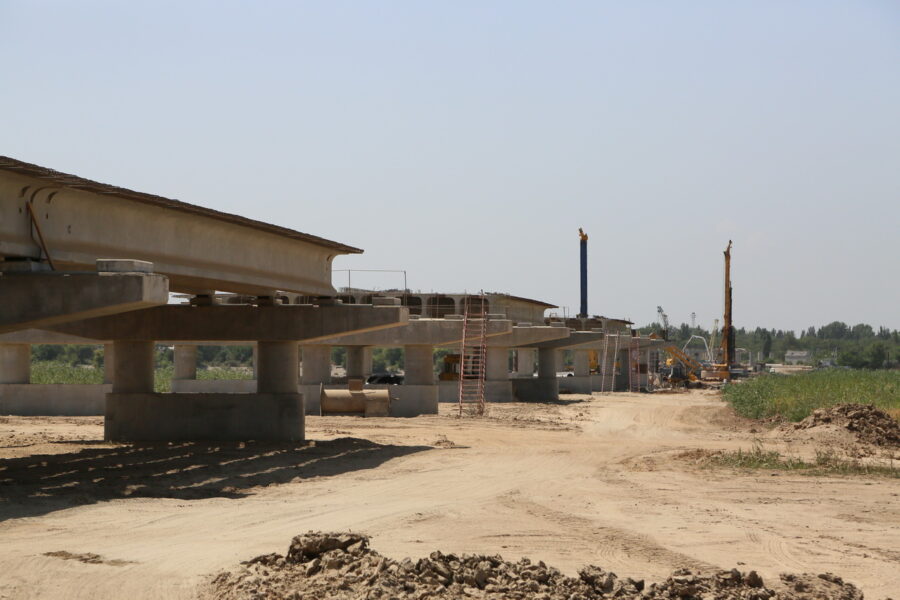На самом мосту через балку и примыкающей к нему эстакаде забурена 301 из 548 буронабивных свай, установлен 31 из 67 ростверков, возведены 26 цоколей, 52 стойки, проложено 24 ригеля и 126 из 476 подферменных площадок. Общий процент возведения мостового перехода составляет 25%.