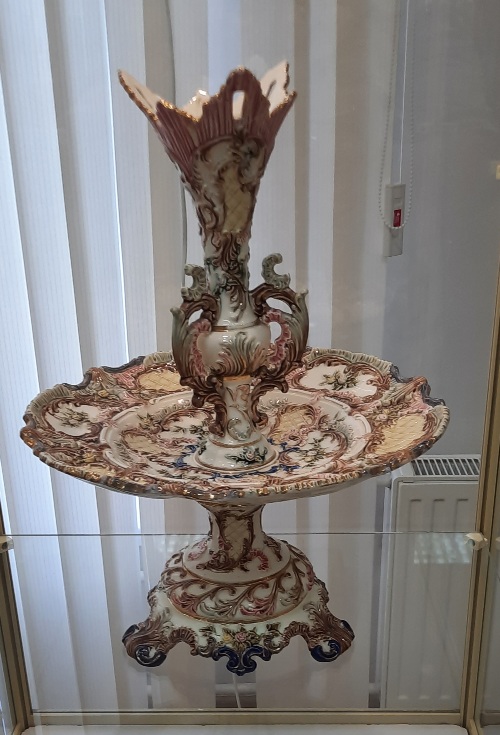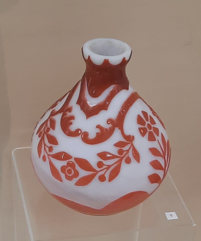 Гордостью музейной коллекции называет экскурсовод германскую двухцветную декоративную вазу, выполненную в технике галле. Технику многослойного травления стекла изобрел французский дизайнер Эмиль Галле.