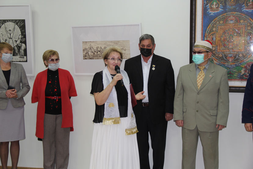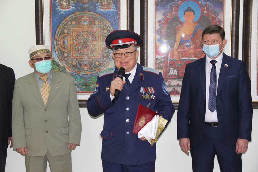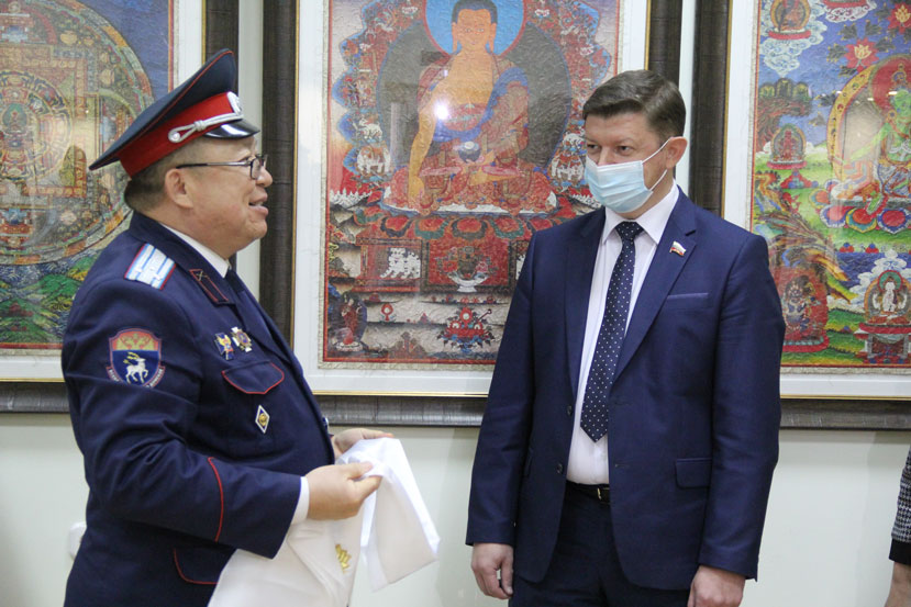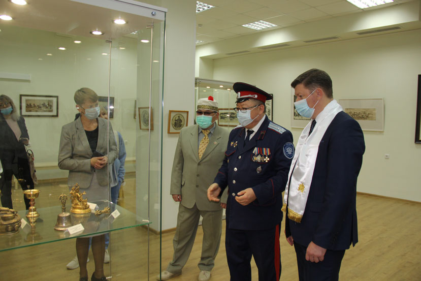 Советник Главы республики Калмыкия Эрдни Манжиков поблагодарил руководство города и музея за гостеприимство и помощь в проведении выставки, а также вручил национальные сувениры.