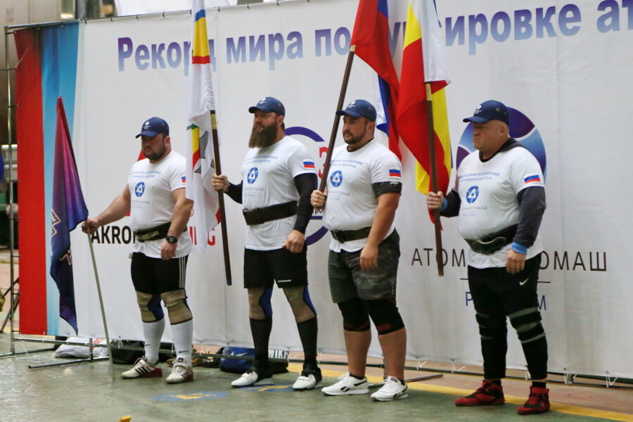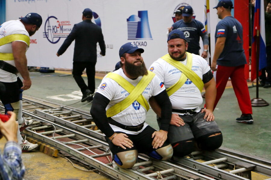 Реактор с места сдвинули и установили рекорд четыре богатыря: мастера спорта по пауэрлифтингу, рекордсмены книги рекордов России Юрий Кузьмин и Алексей Ислентьев, мастер спорта, рекордсмен страны в парной тяге, один из сильнейших атлетов России Егор Сорокалетов, а также призер и победитель турниров по силовому экстриму и рекордсмен страны по буксировке Евгений Осипов.